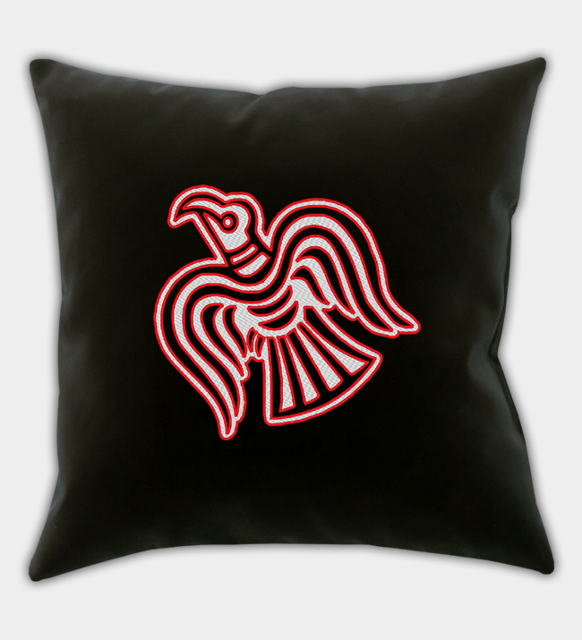 Vyšívaný povlak na polštář s vikingským havranem